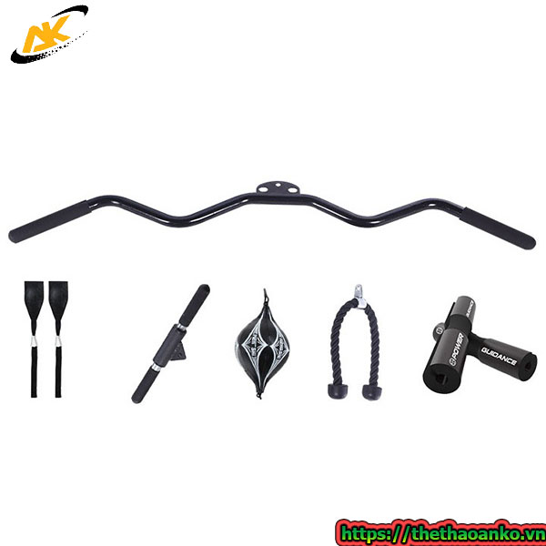 - Ngoài ra, giàn tập tạ đa năng K8 còn được tích hợp thêm thanh tập xà đơn, bộ phận tập xà kép và các phụ kiện đi kèm như tay kéo xô ngắn, thanh kéo xô dài, hay mút xốp lót gánh tạ.