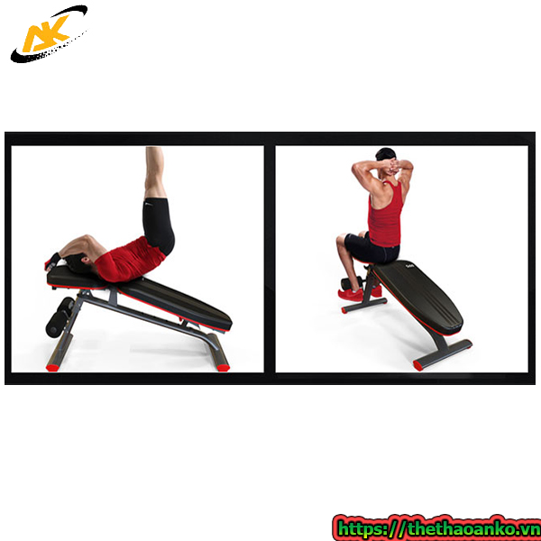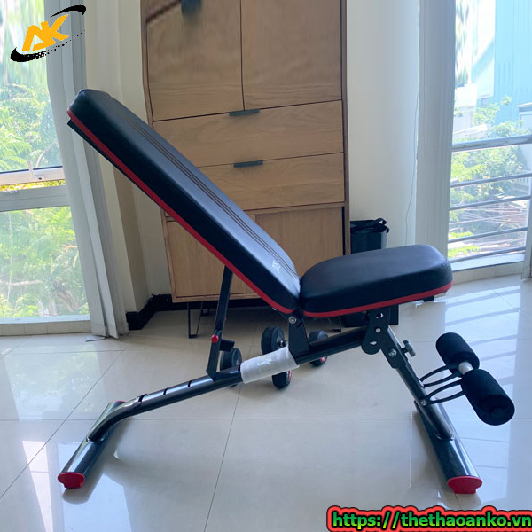 - Thanh cố định chân khi gập bụng được làm chắc chắn, bọc mút dày tới 9.5cm, mang lại cảm giác thoải mái và dễ chịu cho người tập.