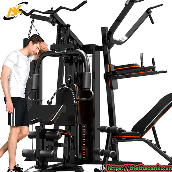 Giàn tạ đa năng JL-808P là giàn tạ đáp ứng được hầu hết các bài tập thể hình hiện nay. Sản phẩm có thể dùng tập luyện cho 3 người cùng lúc.