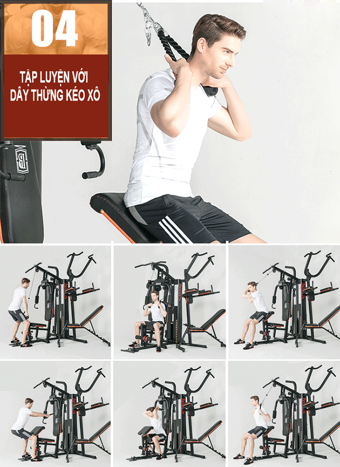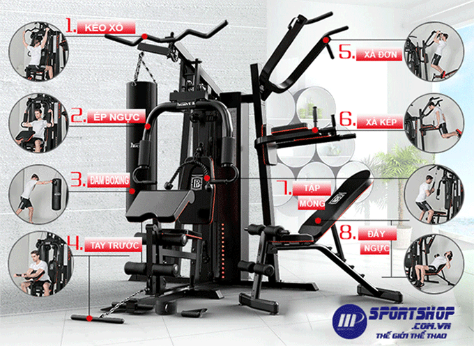 Hình ảnh giới thiệu chi tiết và các bài tập của giàn tạ JL-808P