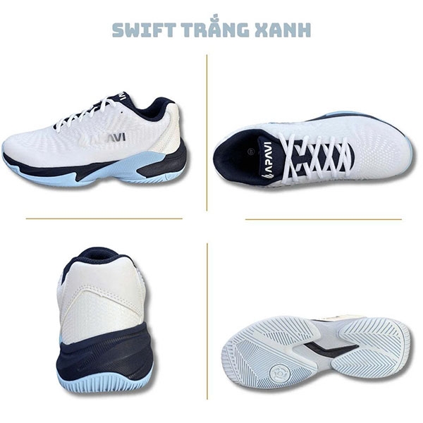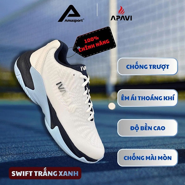 - Giày thể thao APAVI Swift là lựa chọn lý tưởng cho người yêu vận động nhờ sự kết hợp hoàn hảo giữa độ êm – độ bền – khả năng chống trượt. Thiết kế tối ưu cho các môn thể thao trong nhà và ngoài trời, giúp bạn luôn tự tin di chuyển, bật nhảy và đổi hướng nhanh chóng.