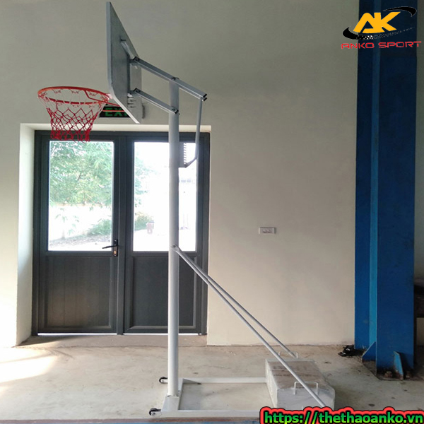 + Trụ bóng rổ có thể dễ dàng di chuyển bằng hệ thống bánh xe.
