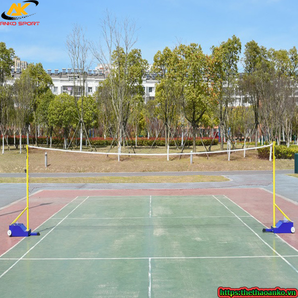 - Trụ cầu lông thi đấu có thể di chuyển dễ dàng bằng 2 bánh xe PVC cỡ lớn được trang bị sẵn.